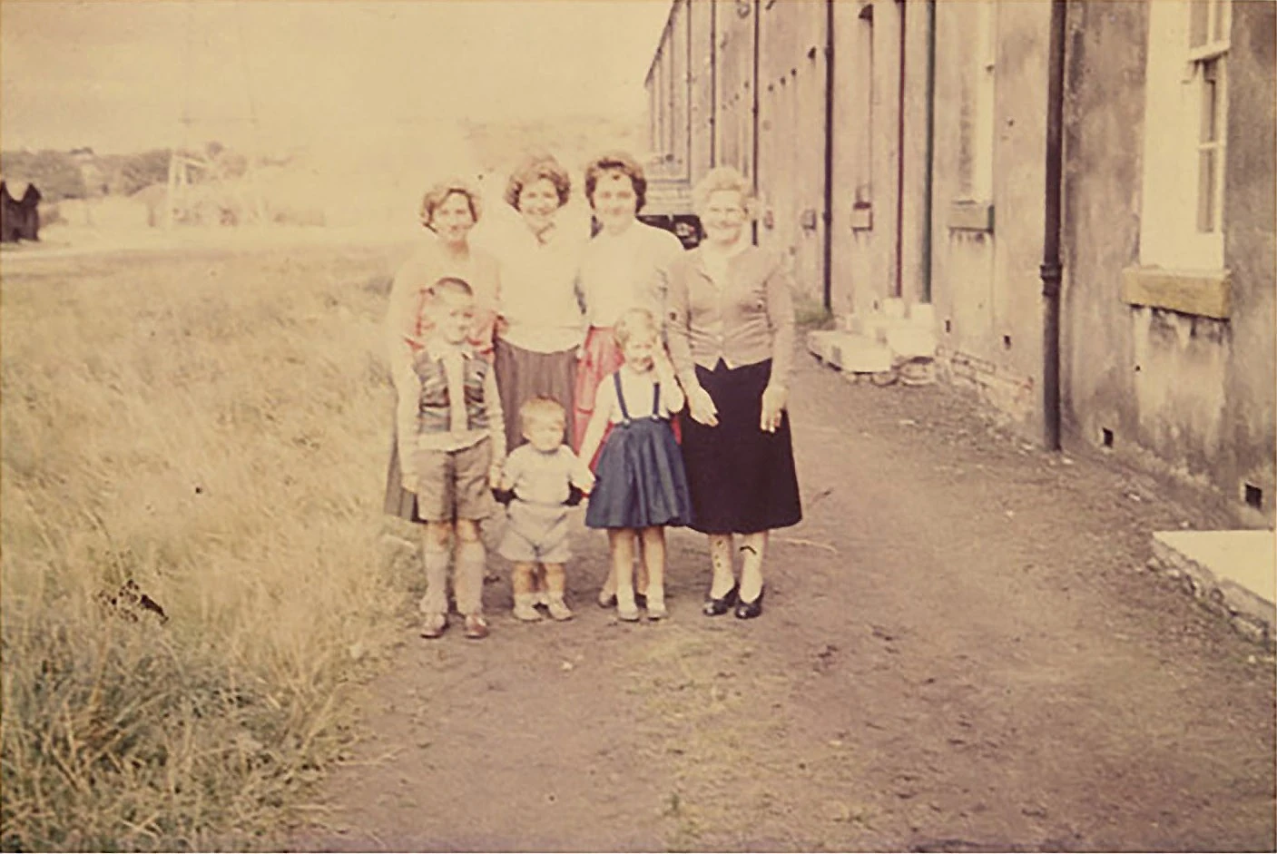 “The Mothers Brood” on our street in ™The Palace™, Bothwellhaugh, a Coal Mining Village near Hamilton Palace, Lanarkshire. It became an Atlantis as the village became intentionally flooded by water diverted from the river Clyde. David Shaw Nicholls is the smallest child at bottom centre.