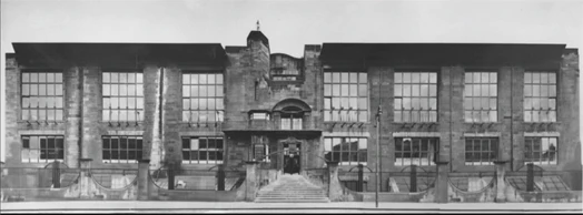 In the picture: Glasgow School of Art, Charles Rennie Mackintosh, architect. Note: the School of Art is being partially re-built due to an accidental fire, which engulfed the entire East wing. November 2016. A second blaze destroys the entire building in June 2018
