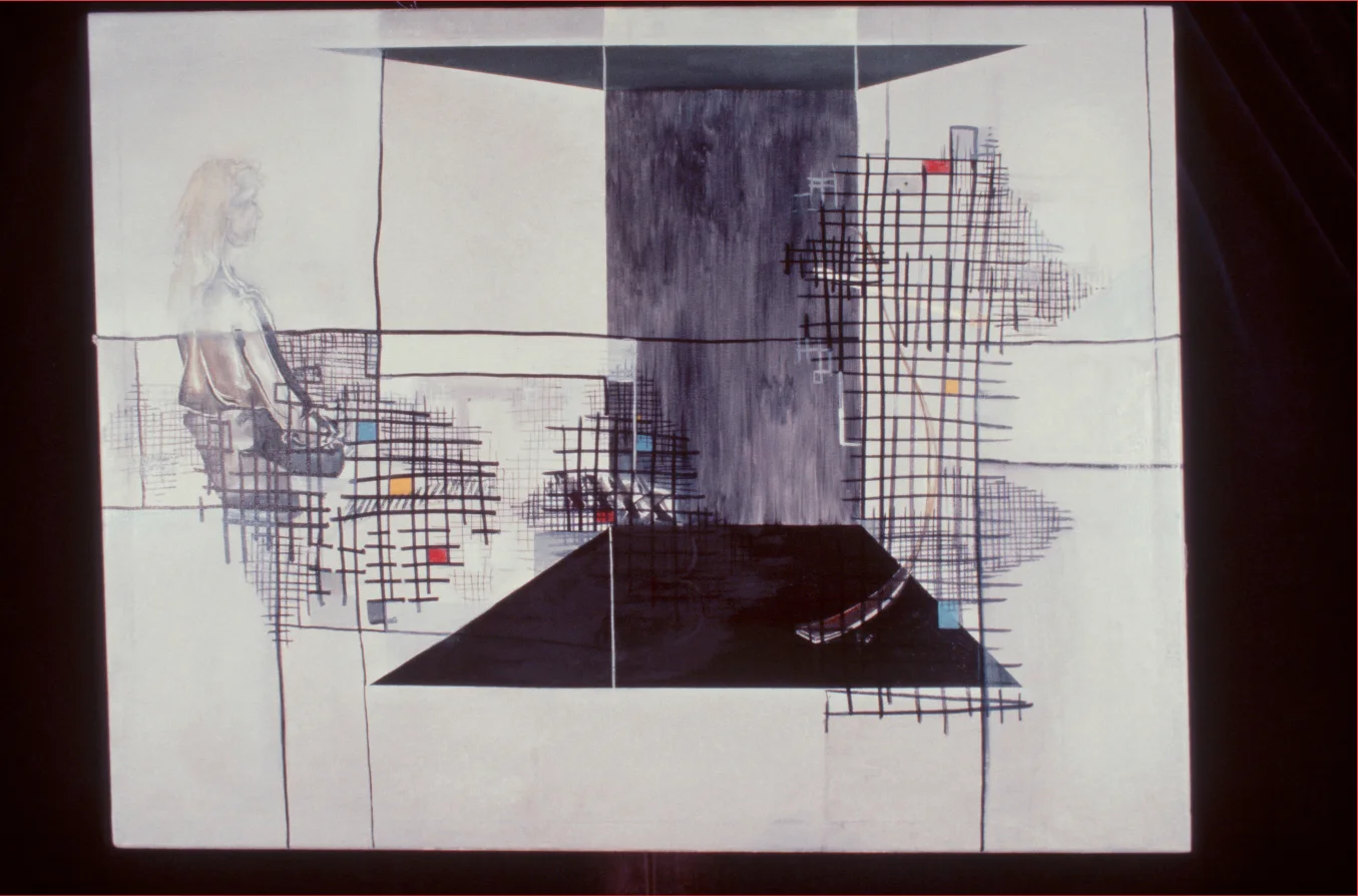 Kate Blee 1977, “The Design Matrix”, a stage set. Acrylic on canvas.