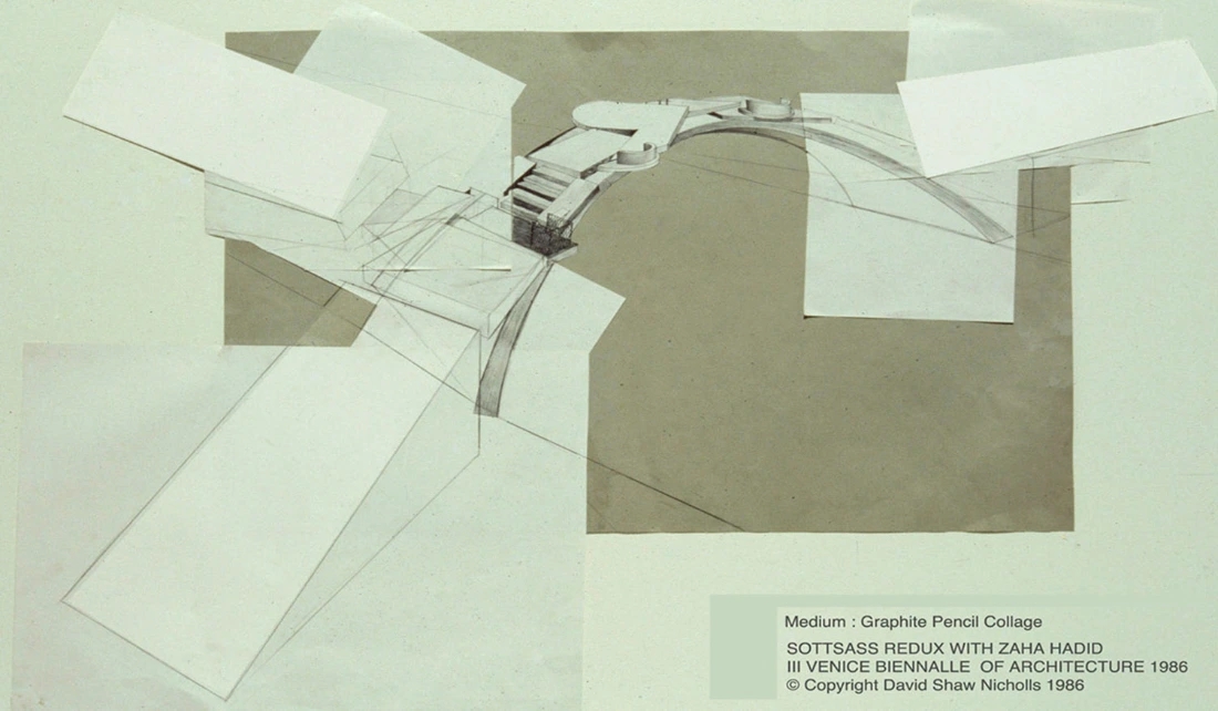 Meets with Zaha Hadid in her London practice and completes the re-design of Ponte Dell Academia proposal. Leaves London to interview with Frank Gehry Architects in Los Angeles. Carries with him a and “pseudo” recommendation letter handwritten by Ettore Sottsass to his friend “Caro Frank, Ciao, come stai….?”