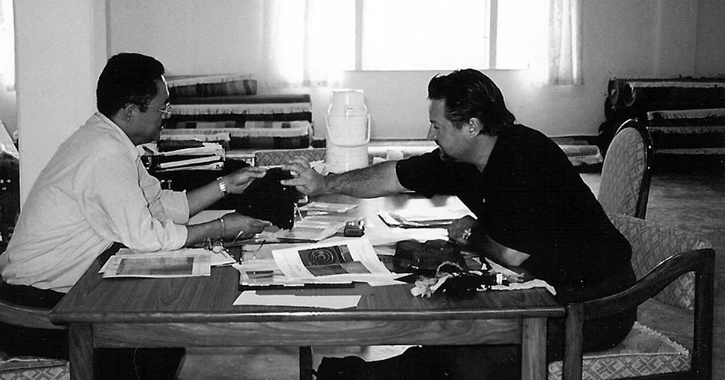 In the picture: Hon. Sonam Norbu, Tibetan Carpet Expert working with David Shaw Nicholls at Kathmandu, Nepal 1994