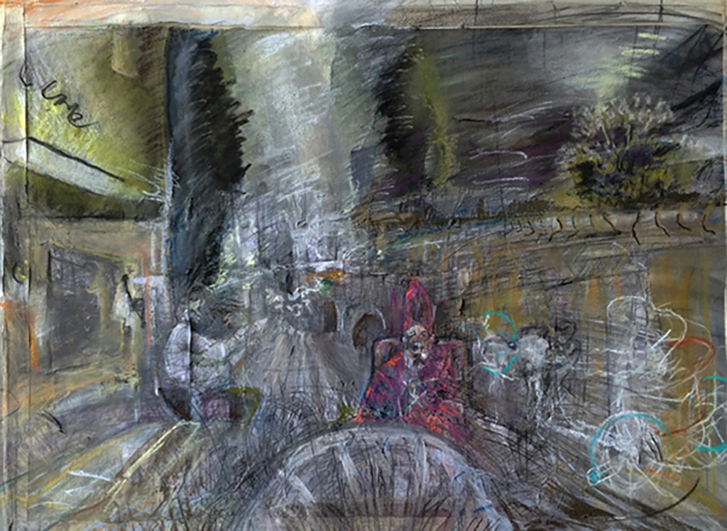 La Giostra di Simone, Montisi , “Via Umberto I” 2016. Barino Umbellico del’Mondo, Tuscany. 2016, Pastel on Paper. Progression of studies.