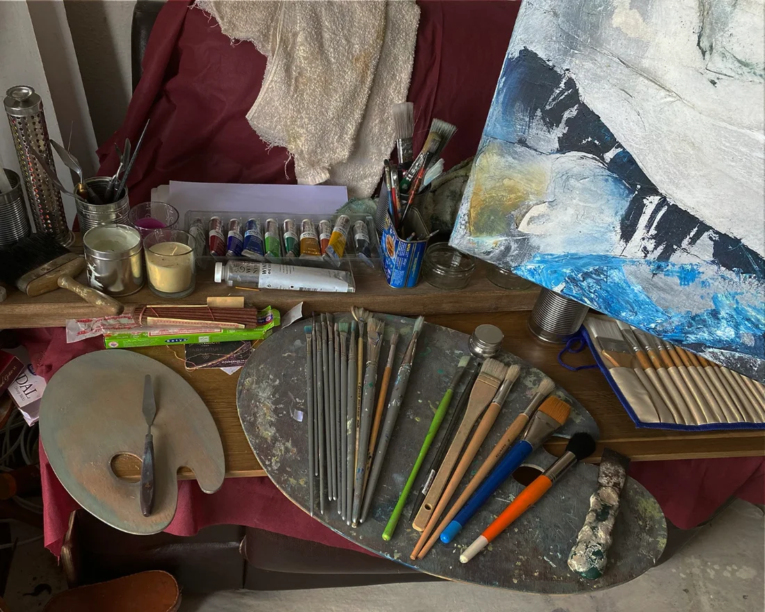 Left: The DSN Art Studio and materials as Herculaneum is underway.