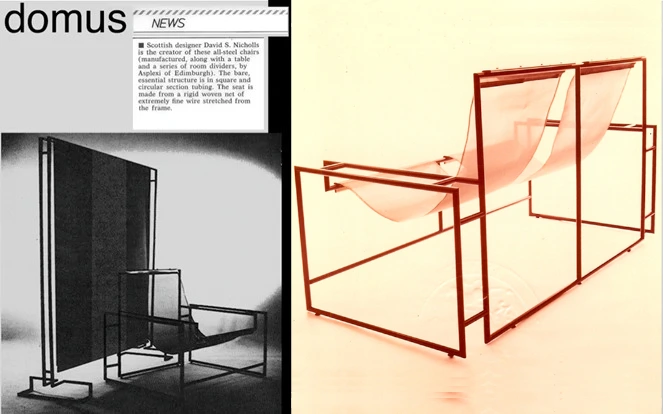 “DESIGN”. Furniture design at Edinburgh College of Art. Left college after second term to form Asflexi Ltd and manufacture minimalist furniture he designed. Jake Harvey permitted the prototype to be welded in the ECA sculpture lab. Launched at Edinburgh Festival, Scotland in 1978. Invited by the Prescote Gallery, along with John Makepeace and the British Designer Craftsmen launched the inaugural furniture exhibition at The Edinburgh City Arts Centre. Subsequently the Fine Arts Society in Glasgow, curated by Roger Billcliffe. A walk down the road to De Marco Gallery and Joseph Beuys was setting up his installation (just saw him with Domus Magazine in Milan with Pierre Restany, verifying the decoration of Domus Showroom on Via Mazzoni, Milano.