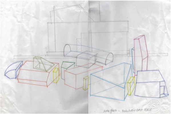 In the picture: Edinburgh College of Art Studio, 1976, “working” drawing by David Shaw Nicholls.