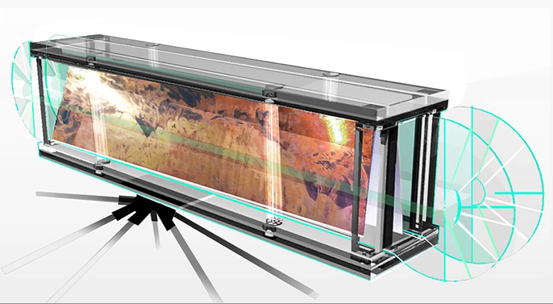 In the picture: CAMELBACK “Casement: The Original Copper plate etching captured Within a class etched case, inspired by the optical research of Leonardo Da Vinci , circa 1540(Site “DSN” Website/Category/Printmaking/Etching).